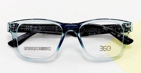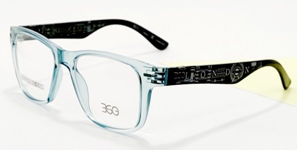 Frente color celeste traslúcido, patillas en color negro y blanco con diseño de íconos de Londres.