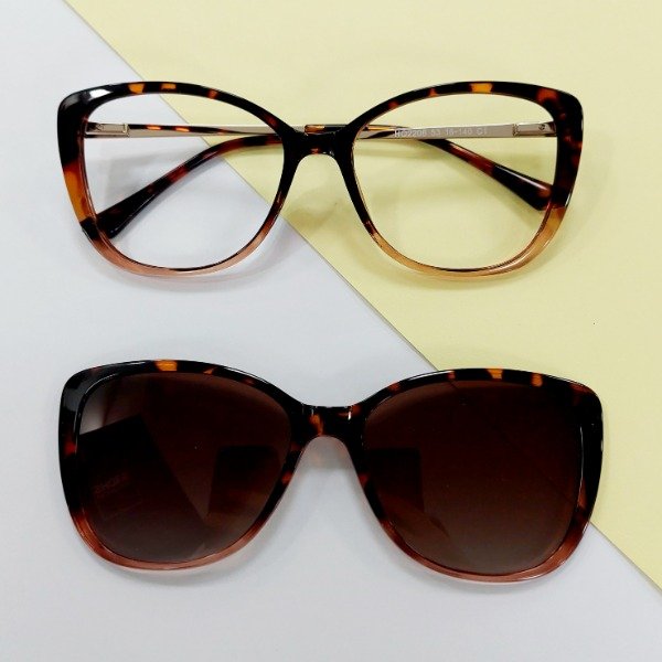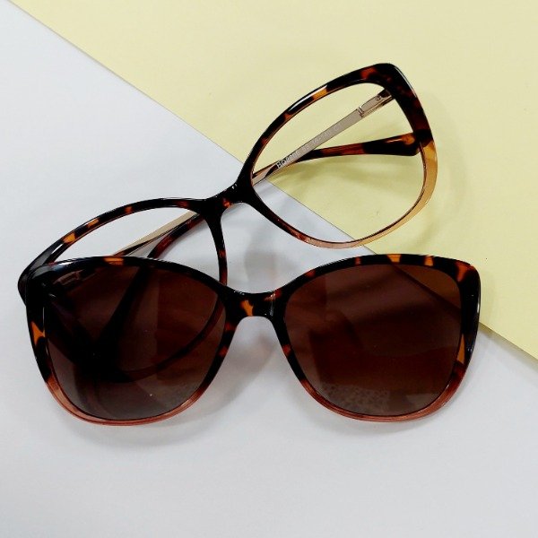 Clip-on: polarizado color sepia, con 100% de filtro ultravioletas con patillas de metal dorafs con flex.